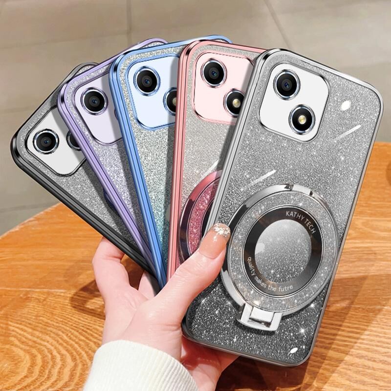 Για Honor Play 30 επιμεταλλωμένο διαβάθμιση Glitter στρογγυλή κάτοχος TPU τηλέφωνο υπόθεση (μαύρο)