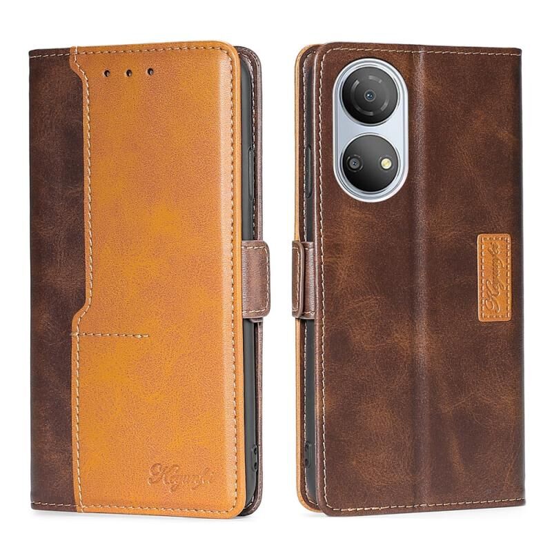 Για Honor Play 30 Plus αντίθεση χρώμα πλευρά πόρπη δερμάτινη θήκη τηλεφώνου υπόθεση (σκούρο καφέ + χρυσό)