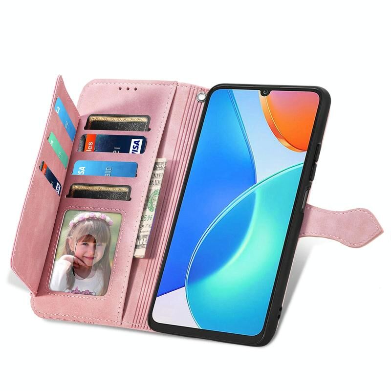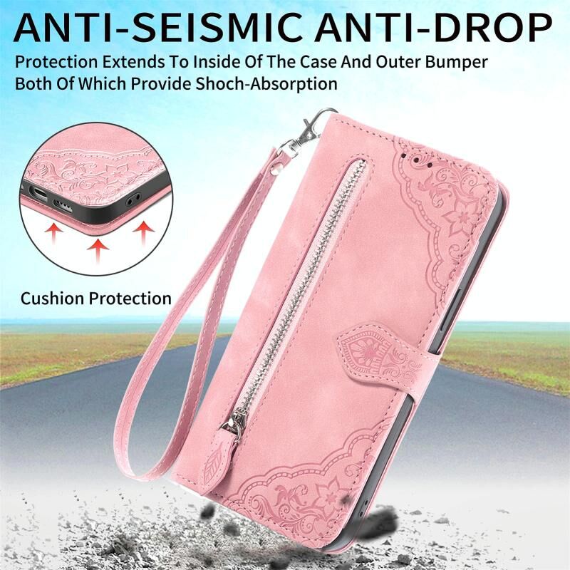 Για Honor Play 30 Plus ανάγλυφο λουλούδι φερμουάρ δερμάτινη θήκη τηλεφώνου (Rose Gold)