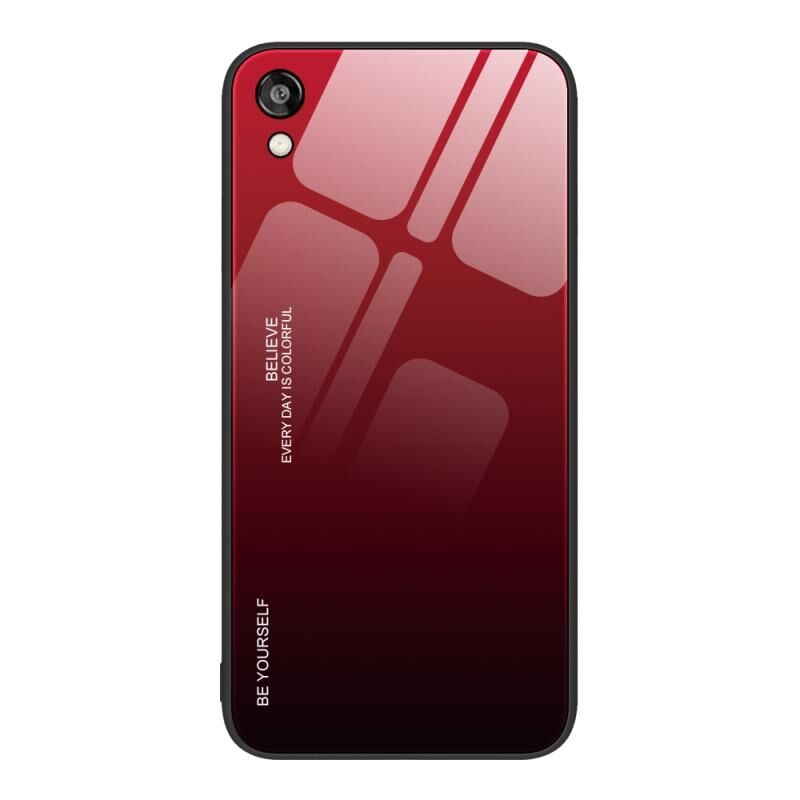 Για Honor Play 3e Κλιμακωτό χρώμα γυάλινη θήκη τηλεφώνου (κόκκινο μαύρο)