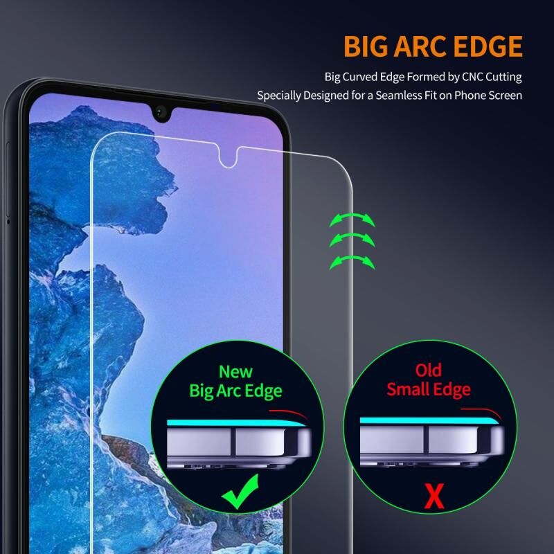 4. Φιλικό προς τις θήκες: Υπάρχει αρκετός χώρος περιθωρίου γύρω από τις άκρες για να αγκαλιάσει η θήκη σας τις άκρες του κινητού σας. Συμβατό με τις περισσότερες θήκες τηλεφώνου.