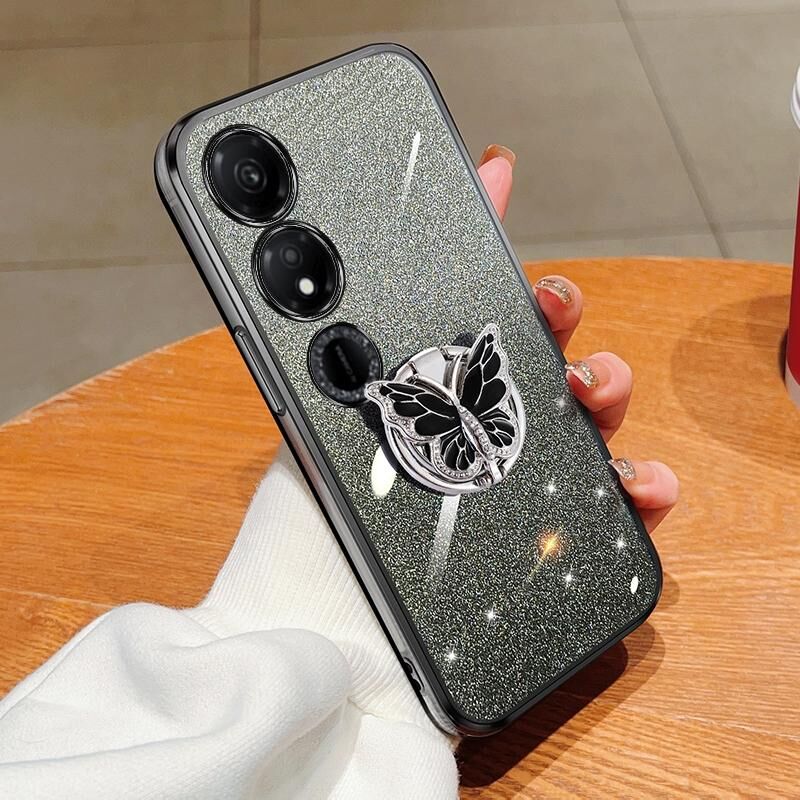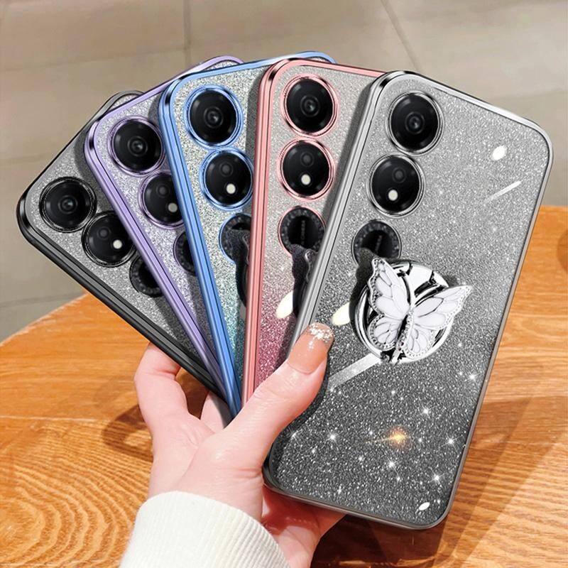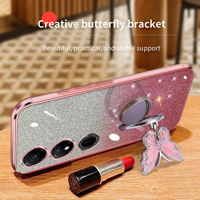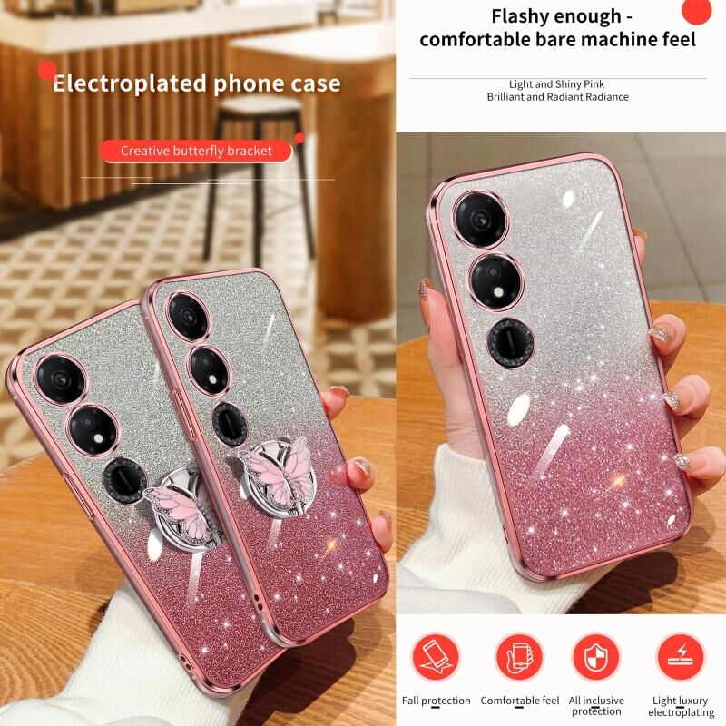 Θήκη κινητού τηλεφώνου TPU για Honor Play 40, με επιμετάλλωση, διαβαθμιστικό γκλίτερ και σχέδιο πεταλούδας (Ροζ)