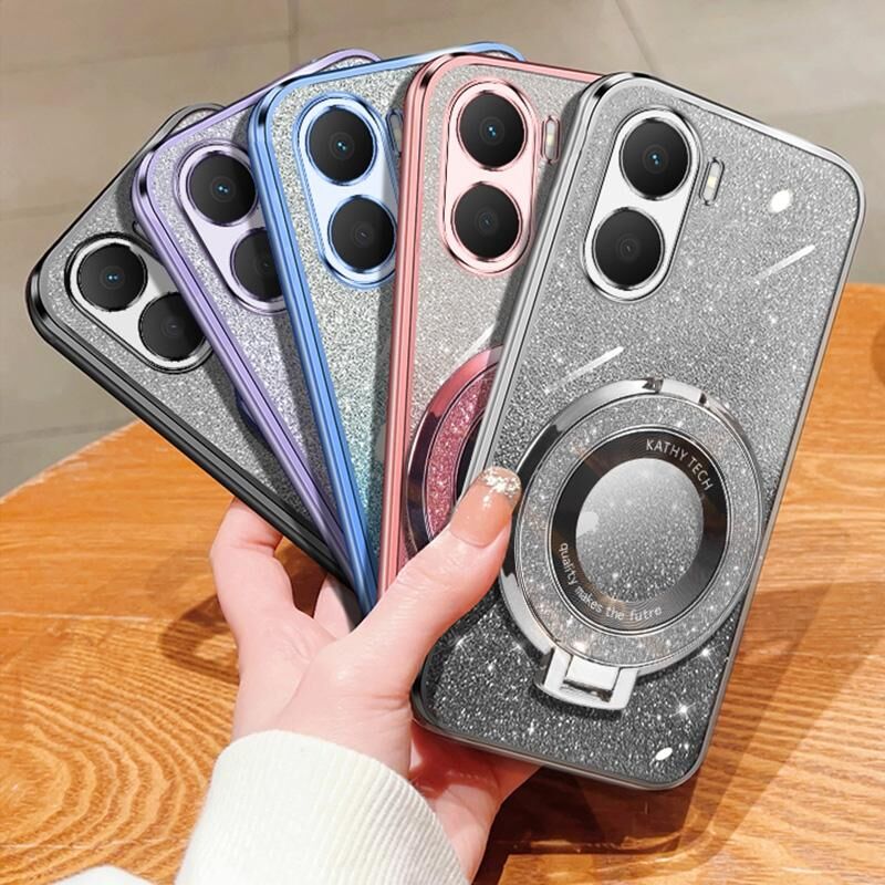 Για το Honor Play 40 Plus Επιμεταλλωμένο βαθμιδωτή Glitter στρογγυλή θήκη TPU τηλέφωνο κάτοχος (μωβ)