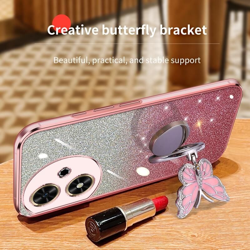 Θήκη κινητού τηλεφώνου TPU για Honor Play 50 με επιμετάλλωση, διαβαθμισμένο γκλίτερ και σχέδιο πεταλούδας (Ροζ)