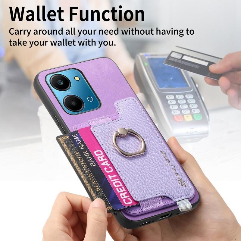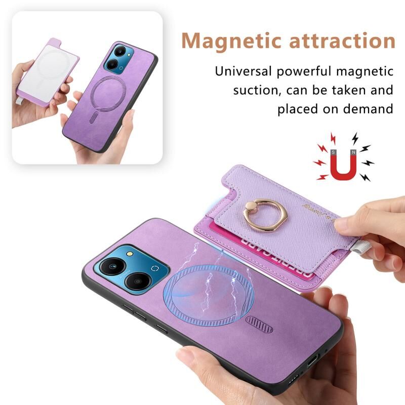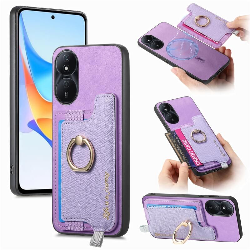 Θήκη τηλεφώνου για Honor Play 50 Plus 5G, με μαγνητική βάση Magsafe, σχέδιο retro, δερμάτινη, με δαχτυλίδι στήριξης και θήκη για κάρτες (Μωβ)