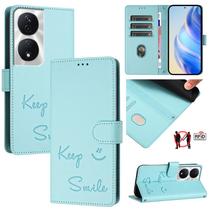 For Honor Play 50 Plus 5G Smile Embossing RFID Leather Phone Case(Mint Green)