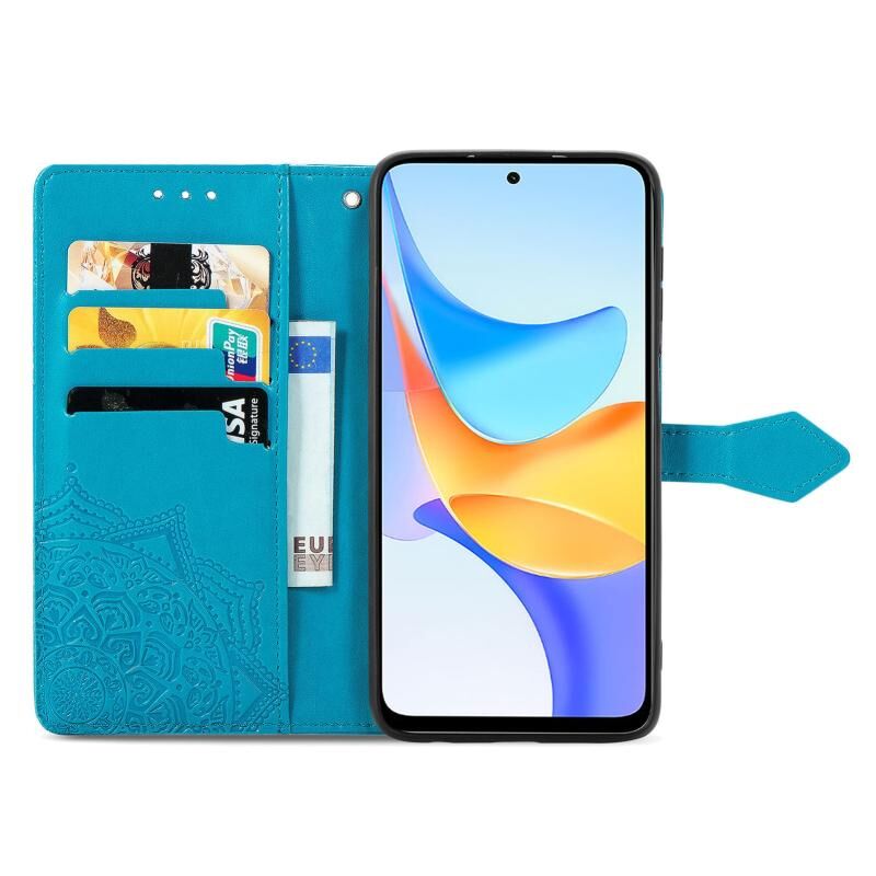 Για Honor Play 50 Plus Mandala λουλούδι ανάγλυφο δερμάτινη θήκη τηλεφώνου (μπλε)