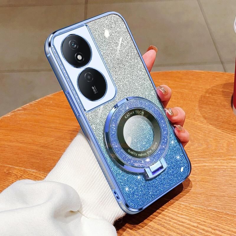 Για το Honor Play 50 Plus επιμεταλλωμένο βαθμιδωτή Glitter στρογγυλή θήκη TPU τηλέφωνο κάτοχος (Sierra Blue)
