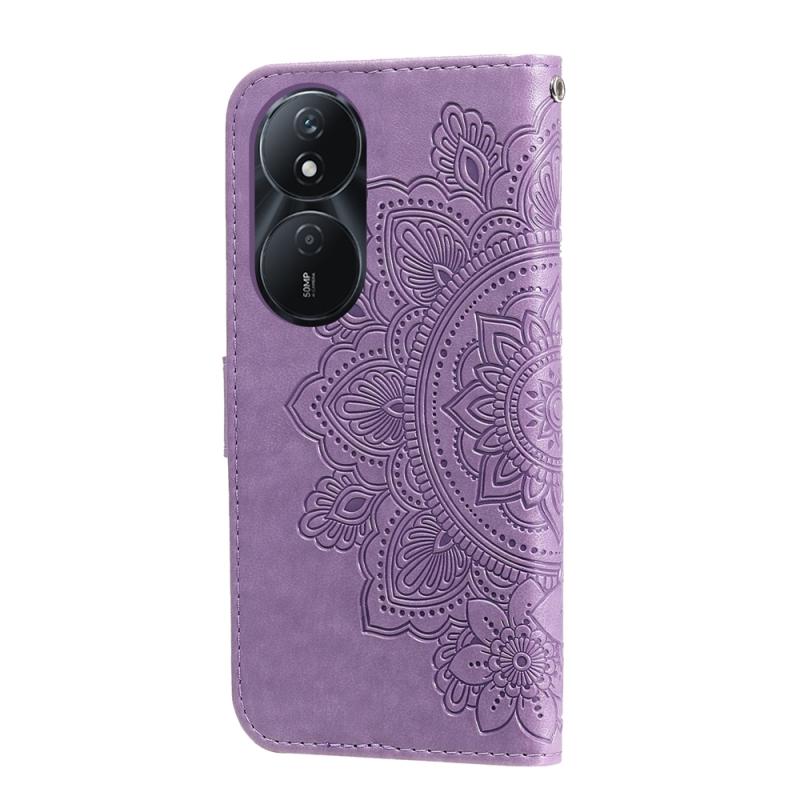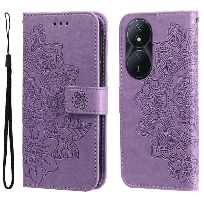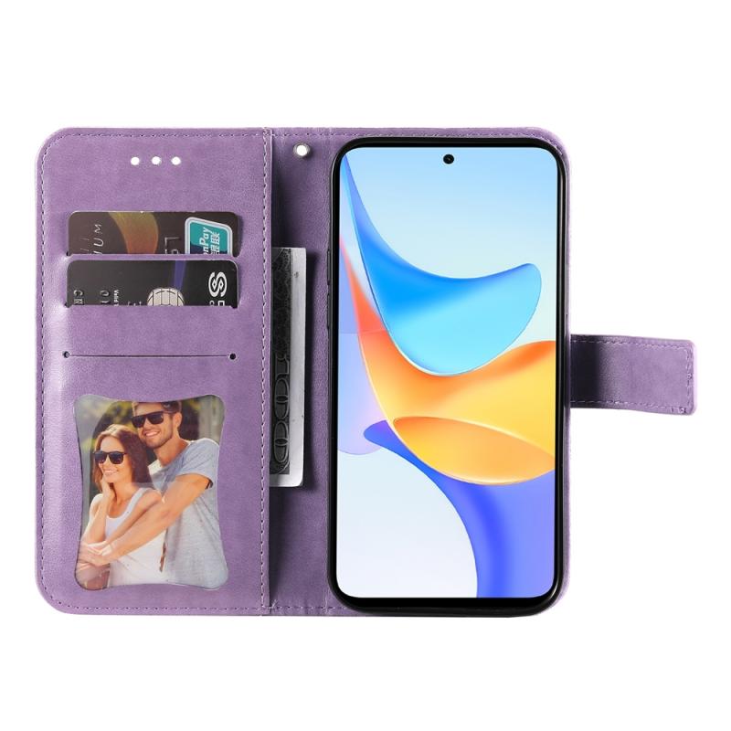 Θήκη τηλεφώνου For Honor Play 50 Plus με ανάγλυφο σχέδιο επτά πετάλων από δέρμα (Ανοιχτό Μωβ)