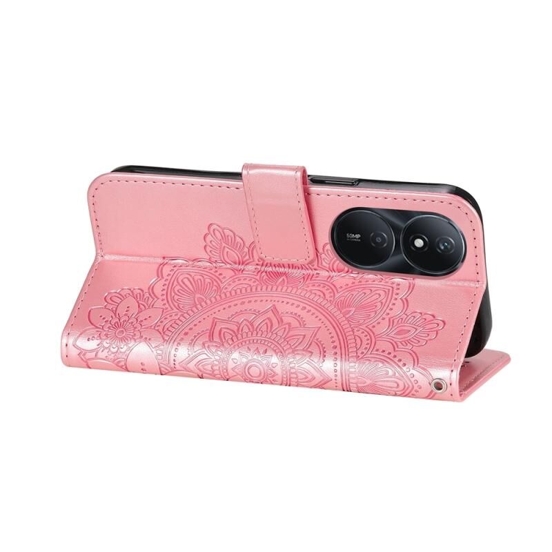 Θήκη τηλεφώνου For Honor Play 50 Plus με ανάγλυφο σχέδιο επτά πετάλων από δέρμα (Ανοιχτό Μωβ)