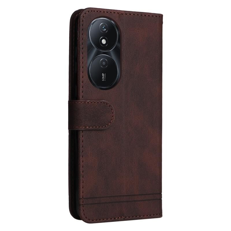 Θήκη κινητού τηλεφώνου Honor Play 50 Plus με αίσθηση δέρματος, μεταλλικό κουμπί και σχέδιο δέντρου ζωής (Καφέ)