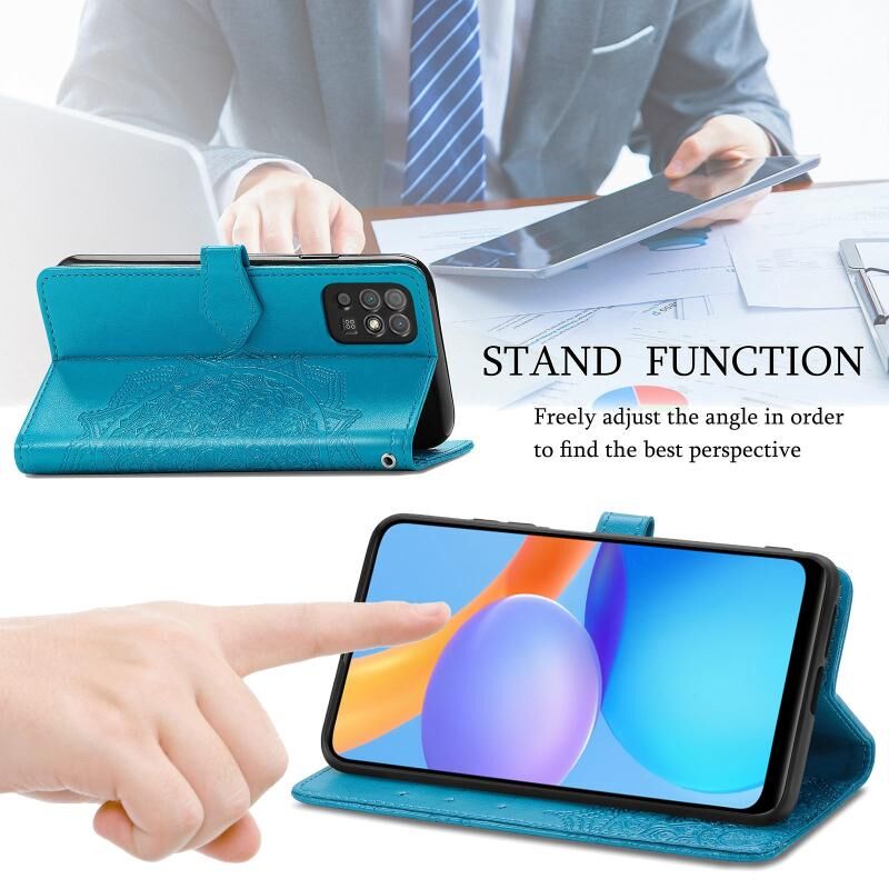 Για Honor Play 5T Mandala λουλούδι ανάγλυφο οριζόντια Flip δερμάτινη θήκη με βραχίονα / υποδοχή για κάρτες / πορτοφόλι / κορδόνι (Μπλε)