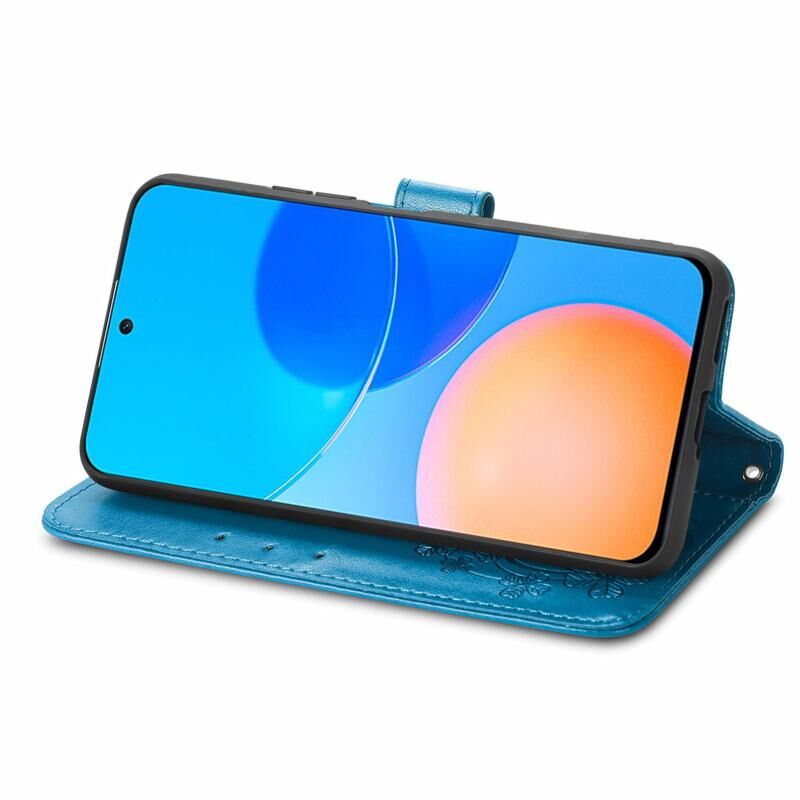 Για Honor Play 5T Pro Four-leaf Clasp ανάγλυφη δερμάτινη θήκη με κορδόνι & υποδοχή για κάρτες & πορτοφόλι & κάτοχος (μπλε)