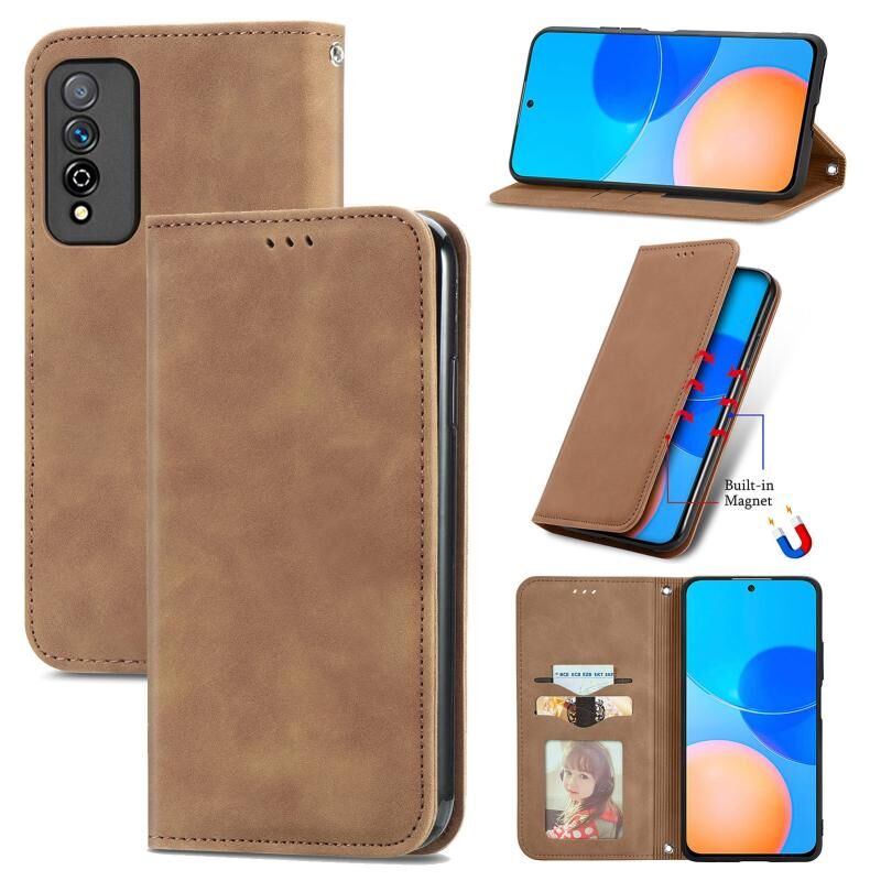 Για το Honor Play 5T Pro Retro Skin Feel Business μαγνητική οριζόντια Flip δερμάτινη θήκη με κάτοχο & υποδοχές καρτών & πορτοφόλι & πλαίσιο φωτογραφιών (Brwon)