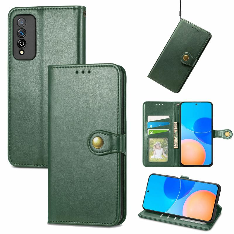 For Honor Play 5T Pro Solid Color Leather Buckle Phone Case(Green)