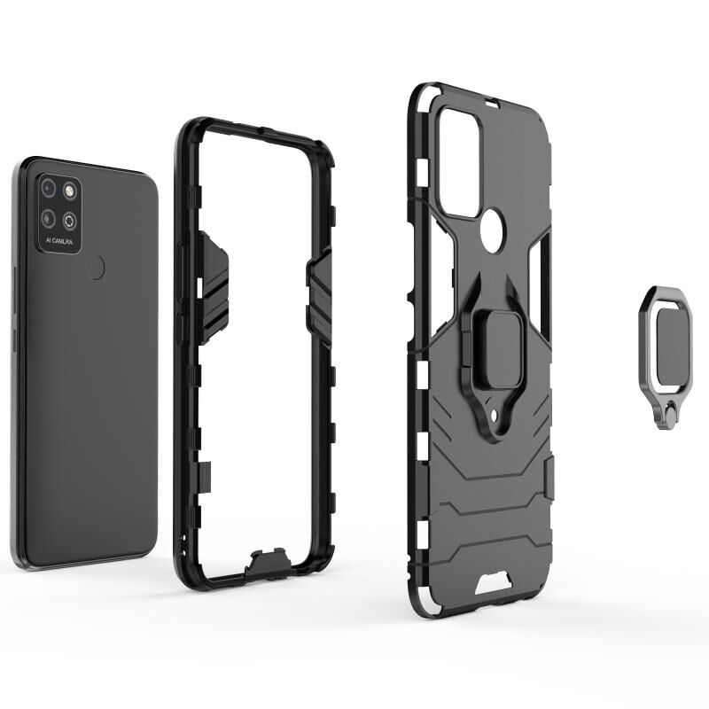 Θήκη Προστασίας για Honor Play 5T, Ανθεκτική σε Κραδασμούς, από PC + TPU με Μαγνητική Βάση Δακτύλου (Μαύρο)