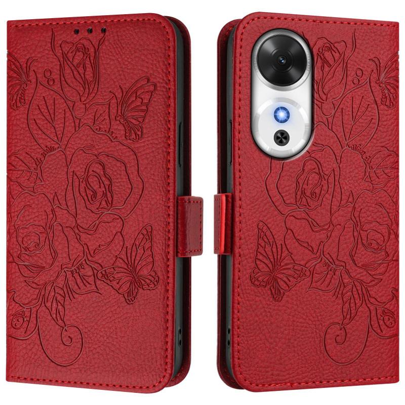 For Honor Play 60 5G Embossed Rose RFID Anti-theft Leather Phone Case(Red)