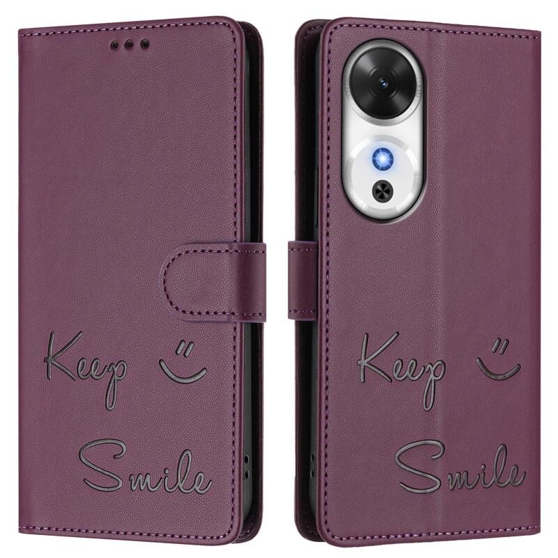 Θήκη τηλεφώνου από δέρμα RFID με ανάγλυφο χαμόγελο για Honor Play 60 5G (Μωβ)