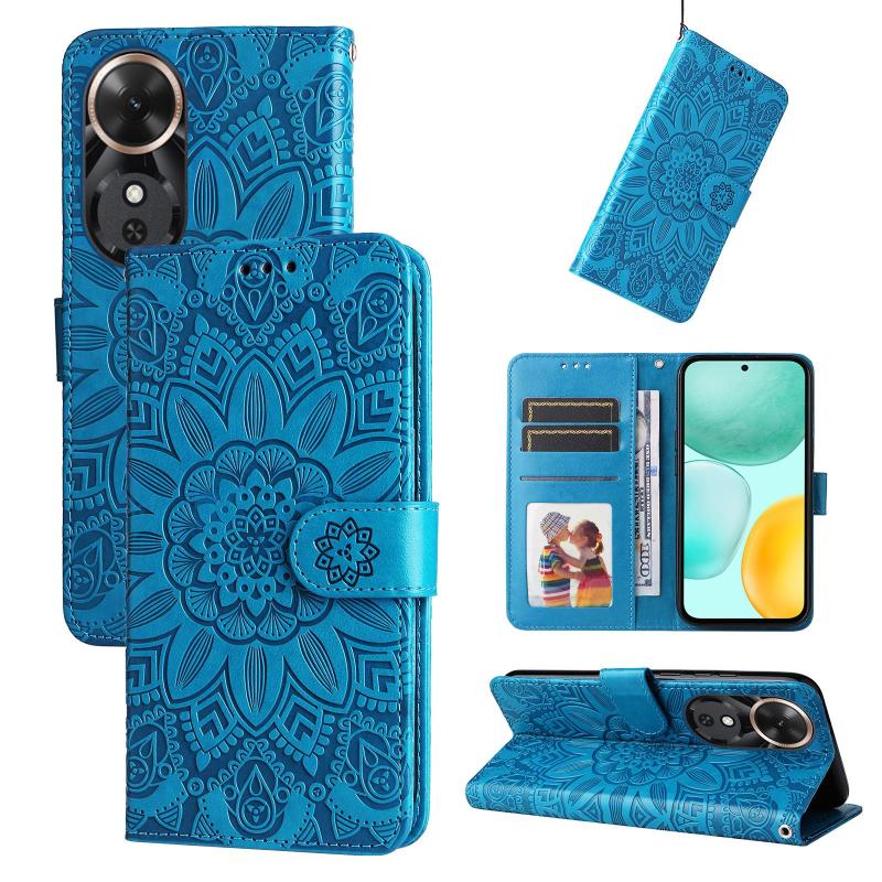 For Honor Play 60 Embossed Sunflower Leather Phone Case(Blue)