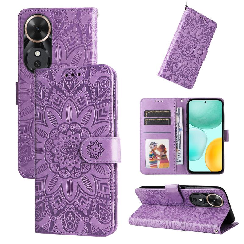For Honor Play 60 Embossed Sunflower Leather Phone Case(Purple)