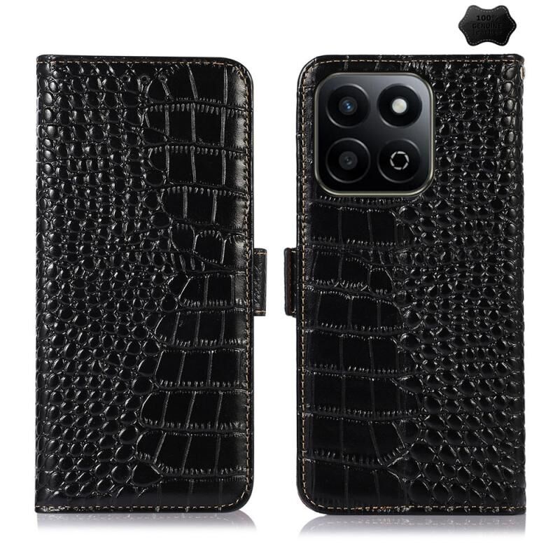 Θήκη τηλεφώνου από γνήσιο δέρμα αγελάδας Top Layer Crocodile για Honor Play 60 Plus / 200 (Μαύρο)