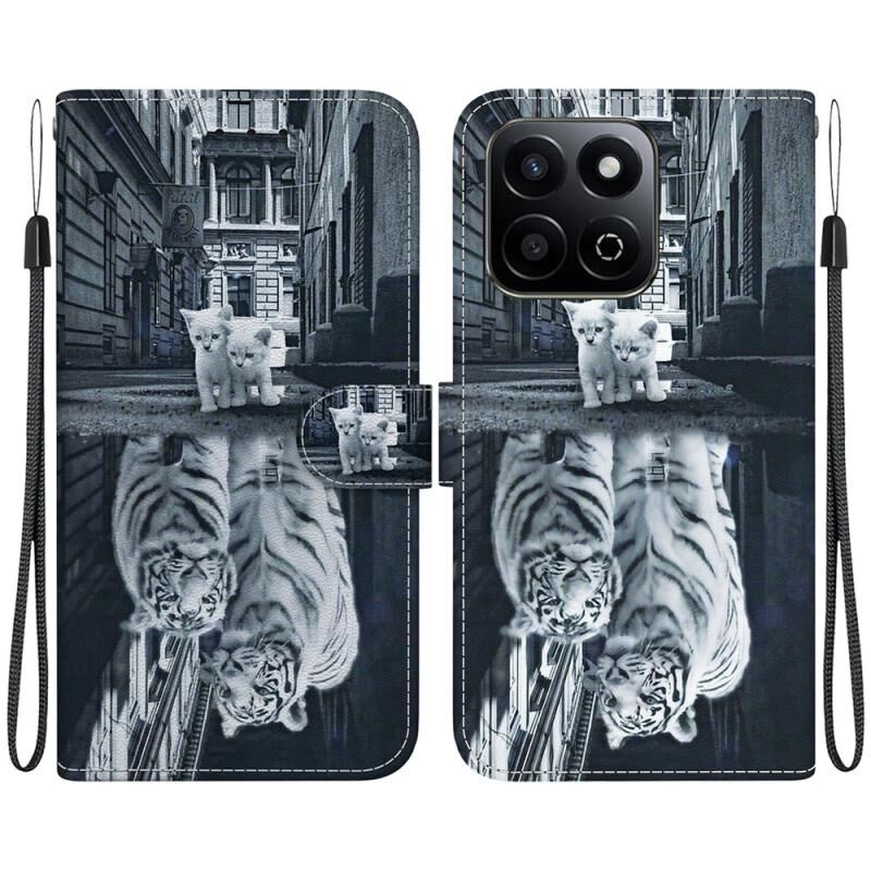 Θήκη τηλεφώνου από δέρμα με πολύχρωμη σχεδίαση κρυστάλλινης υφής για Honor Play 60 Plus (Αντανάκλαση Γάτας-Τίγρης)