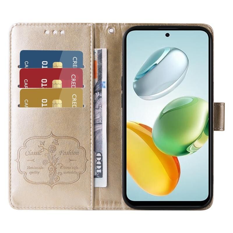 Θήκη τηλεφώνου από δέρμα με ανάγλυφα λουλούδια και πεταλούδες για Honor Play 60 Plus (Χρυσός)