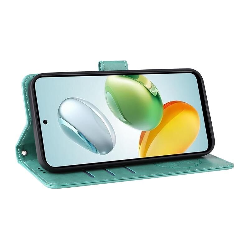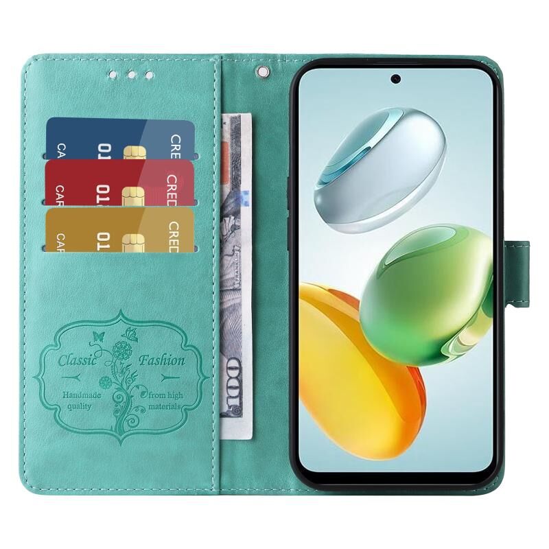 Θήκη τηλεφώνου από δέρμα με ανάγλυφα λουλούδια και πεταλούδες για Honor Play 60 Plus (πράσινο)