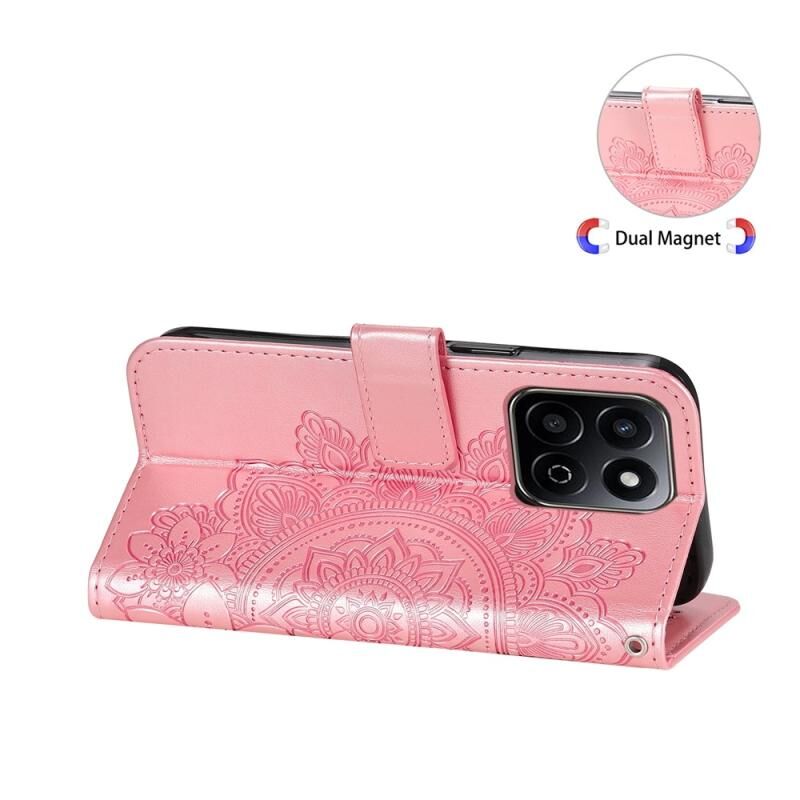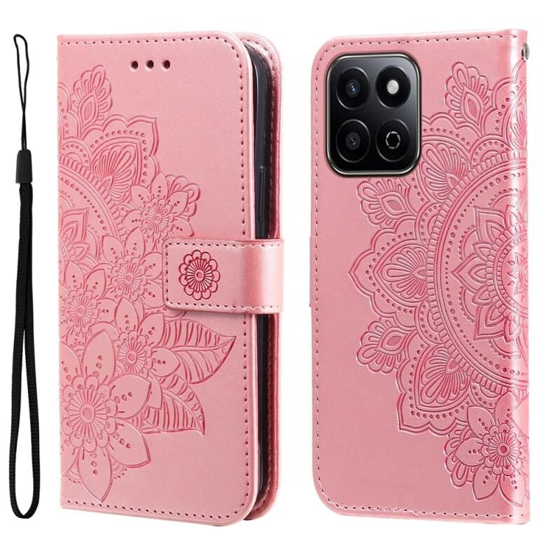 Θήκη τηλεφώνου Honor Play 60 Plus με ανάγλυφα επτά πέταλα λουλουδιών από δέρμα (Ροζ χρυσός)