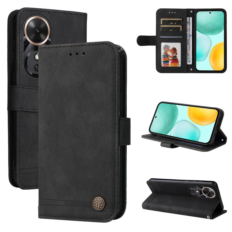 For Honor Play 60 Skin Feel Life Tree Metal Button Leather Phone Case(Black)