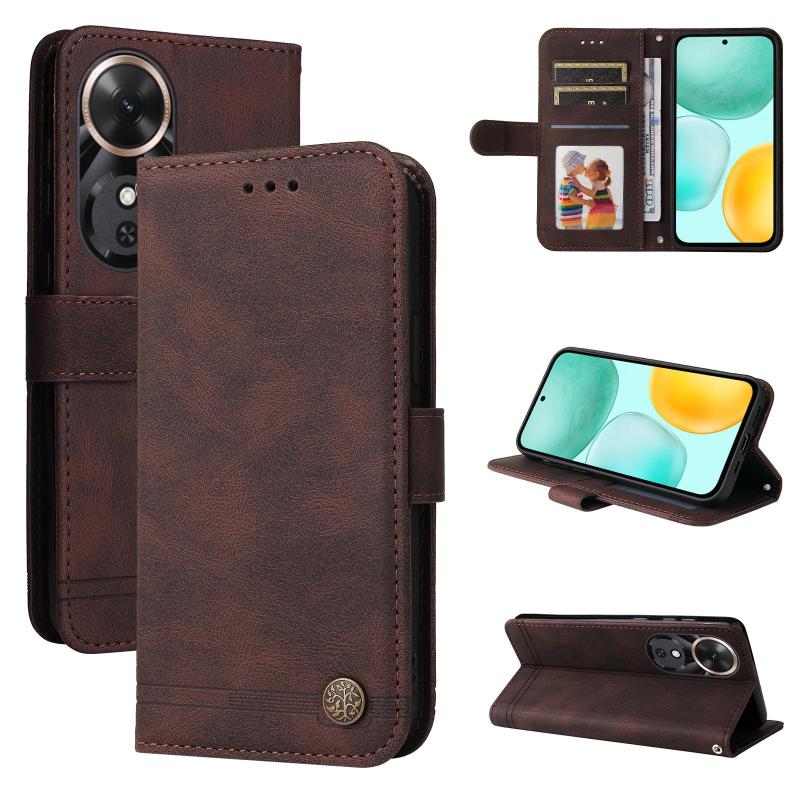For Honor Play 60 Skin Feel Life Tree Metal Button Leather Phone Case(Brown)