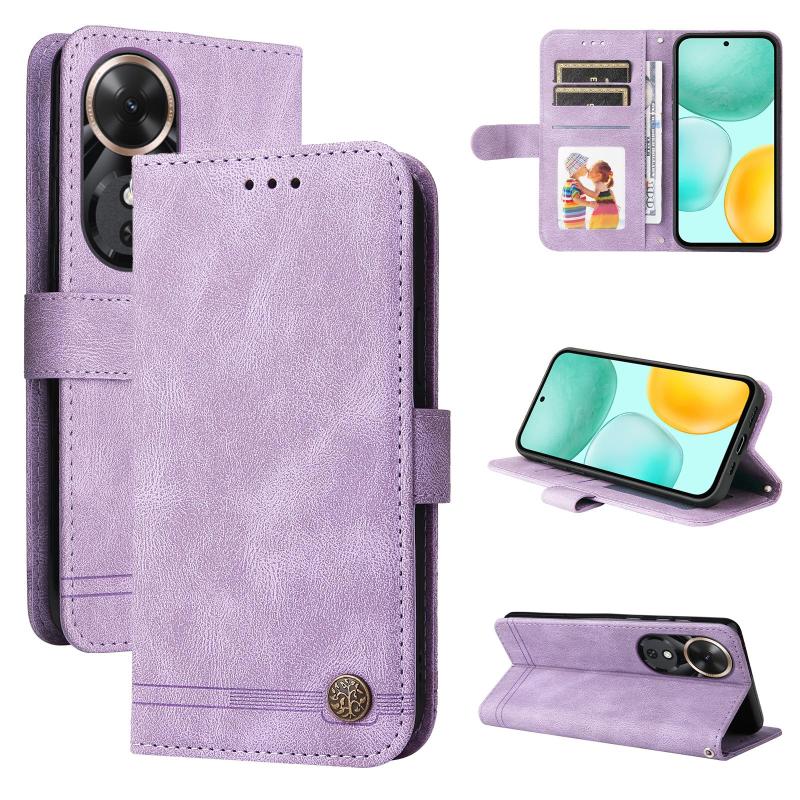 For Honor Play 60 Skin Feel Life Tree Metal Button Leather Phone Case(Purple)