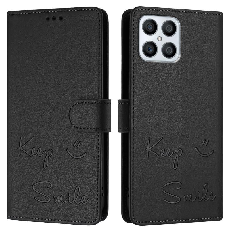 Θήκη τηλεφώνου από δέρμα με ανάγλυφο χαμόγελο και τεχνολογία RFID για Honor Play6T Pro 5G (Μαύρο)
