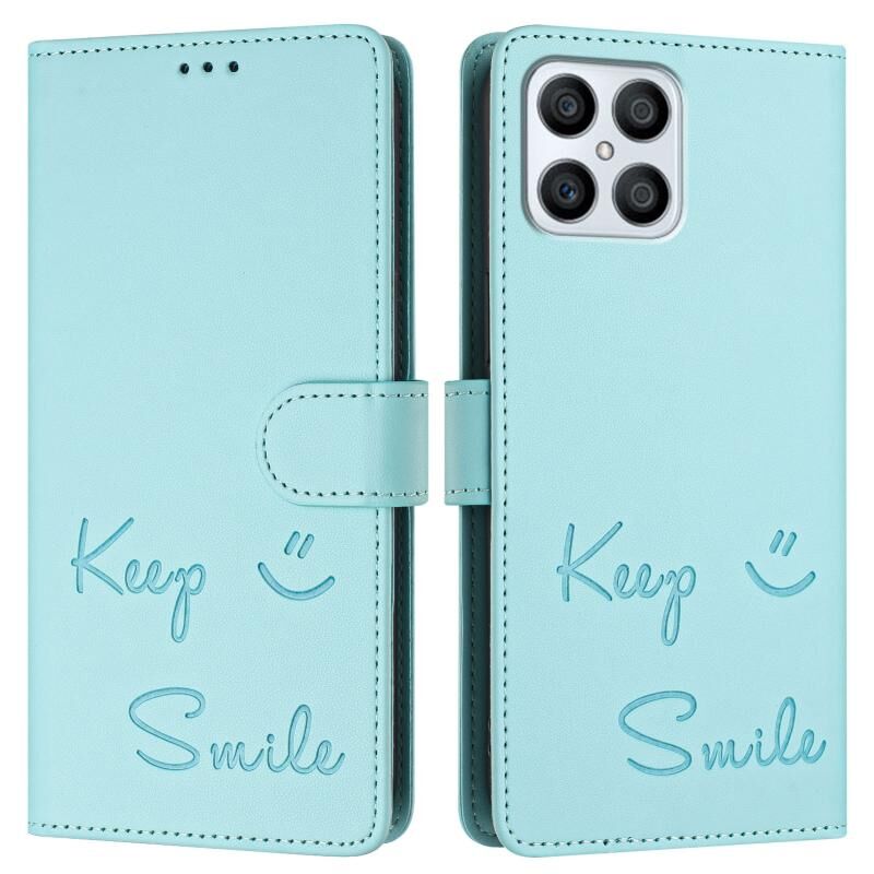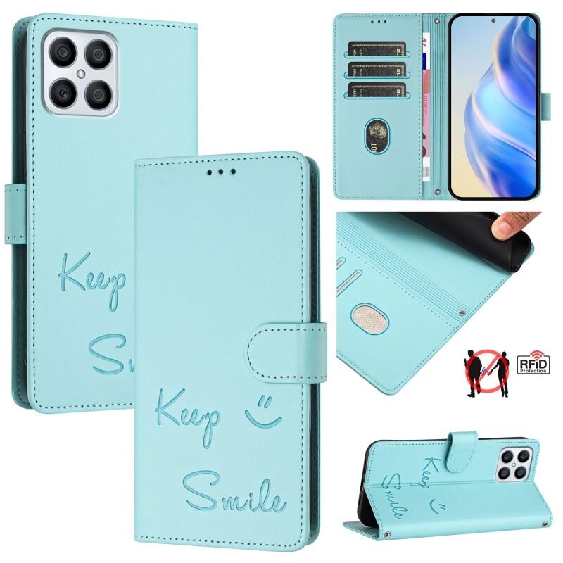 Θήκη τηλεφώνου από δέρμα με ανάγλυφο χαμόγελο και τεχνολογία RFID για Honor Play6T Pro 5G (Μέντας πράσινο)