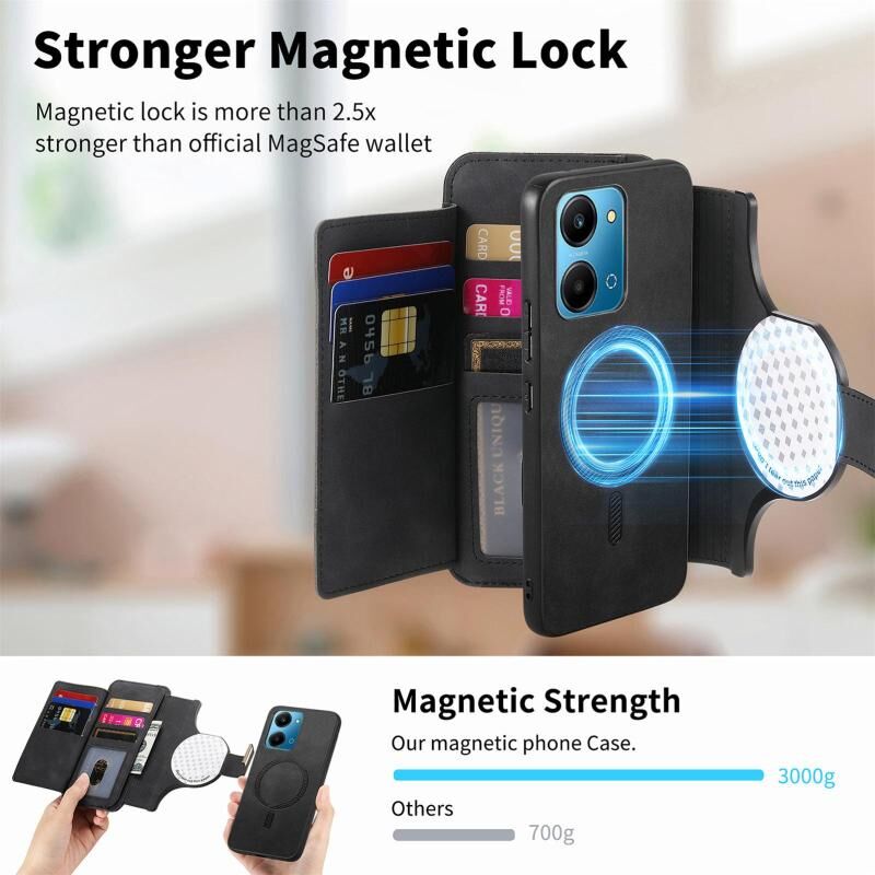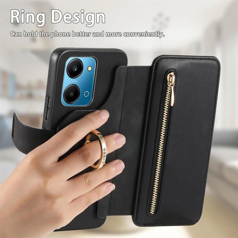 Θήκη τηλεφώνου από δέρμα με μαγνητική σύνδεση MagSafe, με φερμουάρ και προστασία RFID για Honor Play7T 5G (Ροζ)