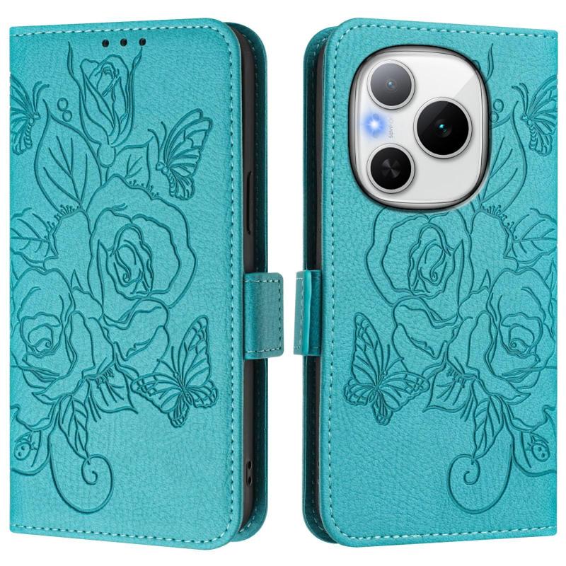 For Honor Power 5G Embossed Rose RFID Anti-theft Leather Phone Case(Light Blue)