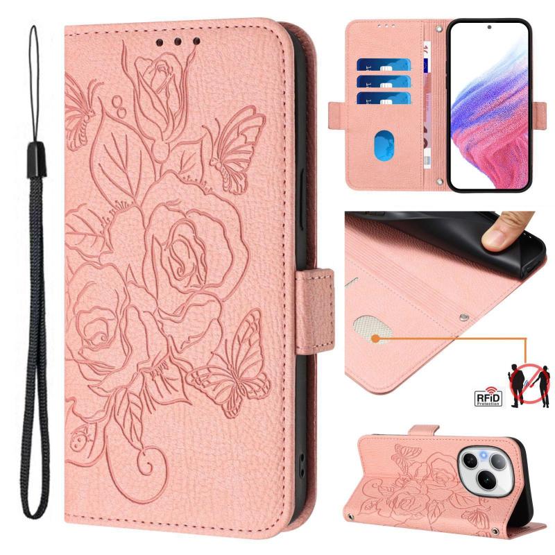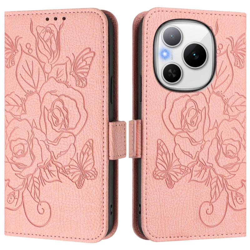 For Honor Power 5G Embossed Rose RFID Anti-theft Leather Phone Case(Pink)