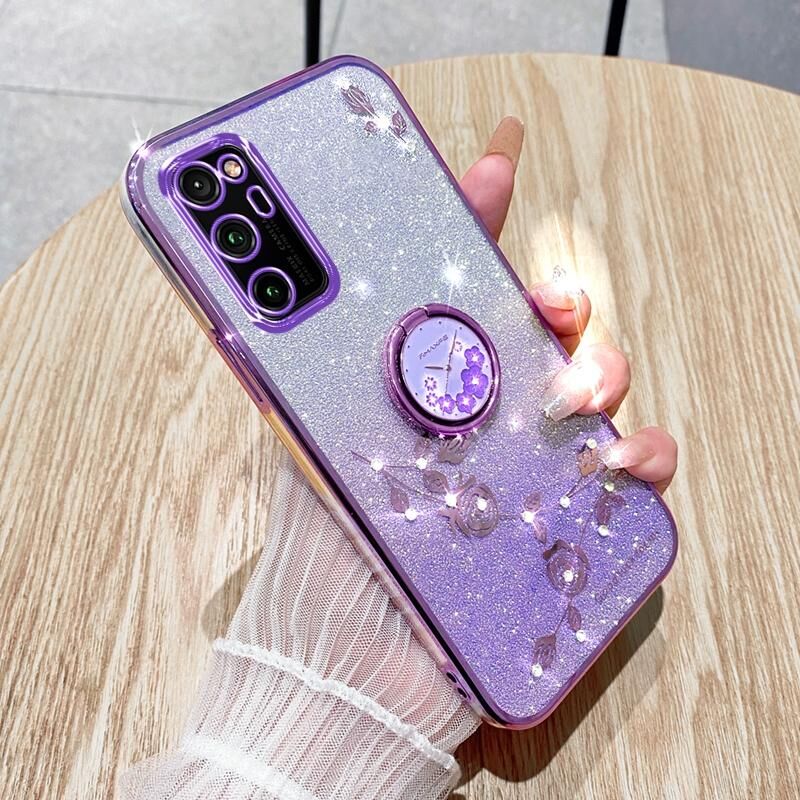 Θήκη κινητού τηλεφώνου For Honor V30 Pro με διαβαθμισμένη λάμψη, αθάνατο λουλούδι και δακτύλιο πλήρους προστασίας (Μωβ)