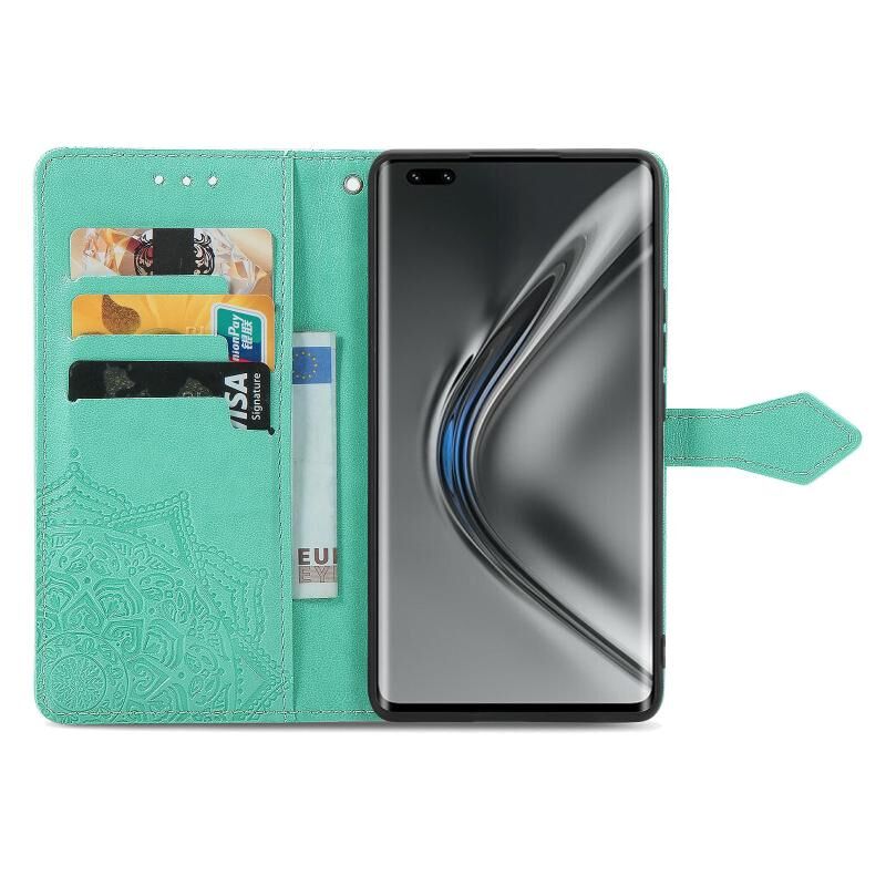 Για Honor V40 5G Mandala λουλούδι ανάγλυφο οριζόντια Flip δερμάτινη θήκη με βραχίονα / Υποδοχή κάρτας / πορτοφόλι / Lanyard (πράσινο)