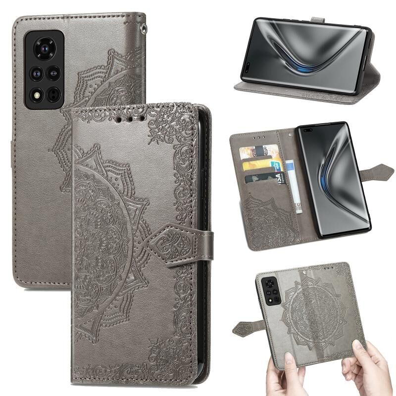Για Honor V40 5G Mandala λουλούδι ανάγλυφο οριζόντια Flip δερμάτινη θήκη με βραχίονα / Υποδοχή κάρτας / πορτοφόλι / Lanyard (γκρι)