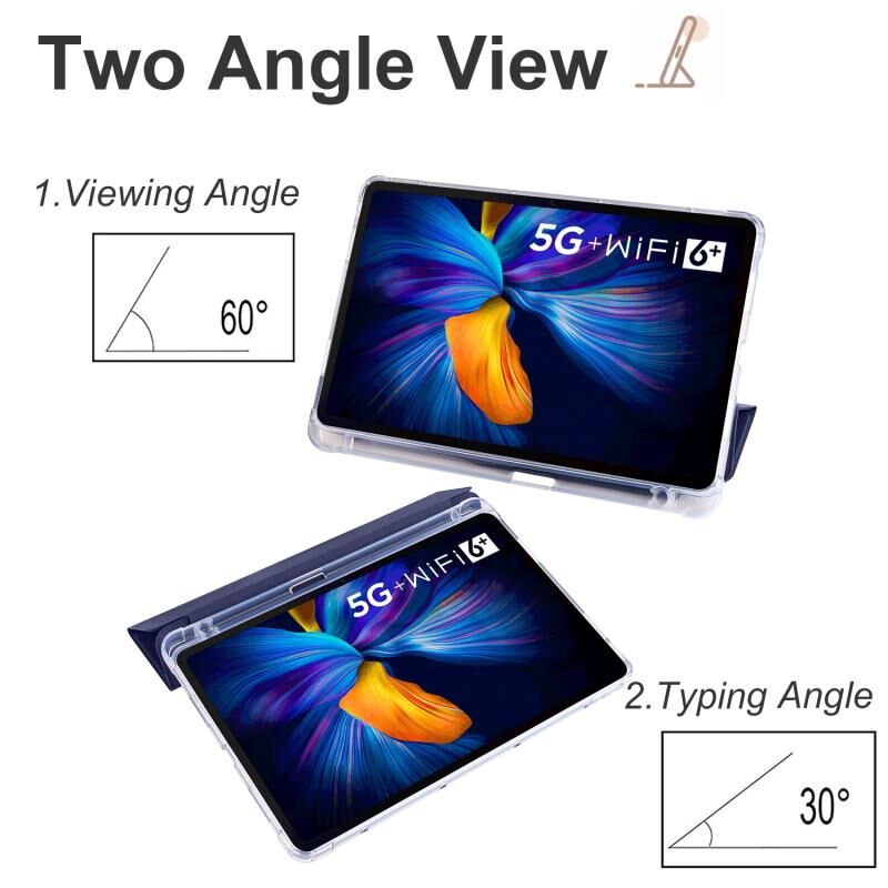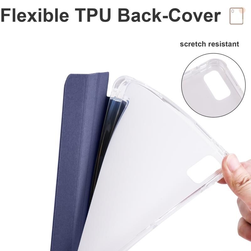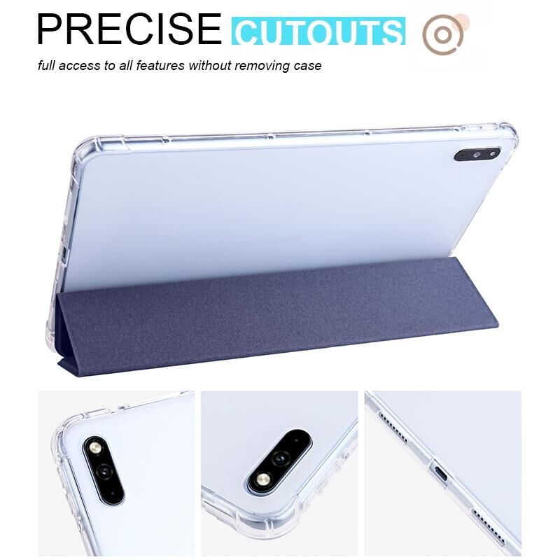 Για Honor V6 10,4 ιντσών 3 πτυσσόμενα Διαφανής TPU Smart Leather Tablet υπόθεση (σκούρο μπλε)