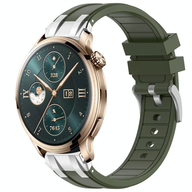 Για το Honor Watch 4 Pro 22mm Quick Release Silver Buckle Royal Silicone Watch Band(Olive Green)
