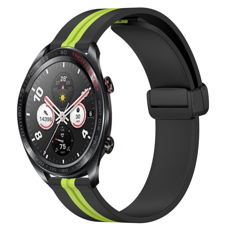 Για το Honor Watch Dream 22mm Πτυσσόμενο μαγνητικό κούμπωμα ζώνη ρολογιού σιλικόνης (μαύρο + πράσινο χρώμα)