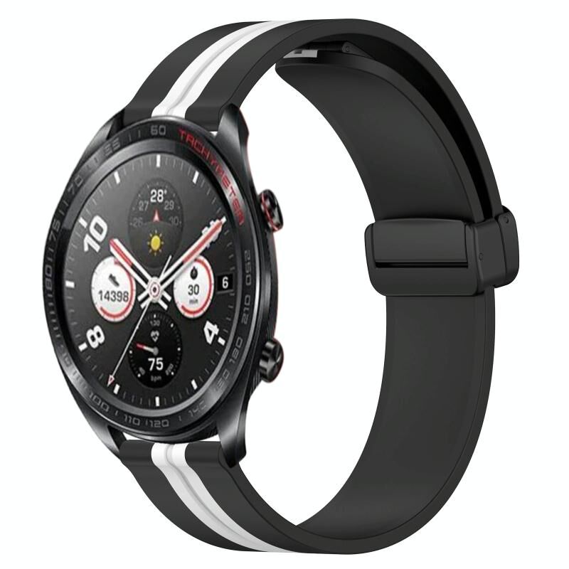 Για το Honor Watch Dream 22mm Πτυσσόμενο μαγνητικό κούμπωμα ζώνη ρολογιού σιλικόνης (μαύρο + λευκό)
