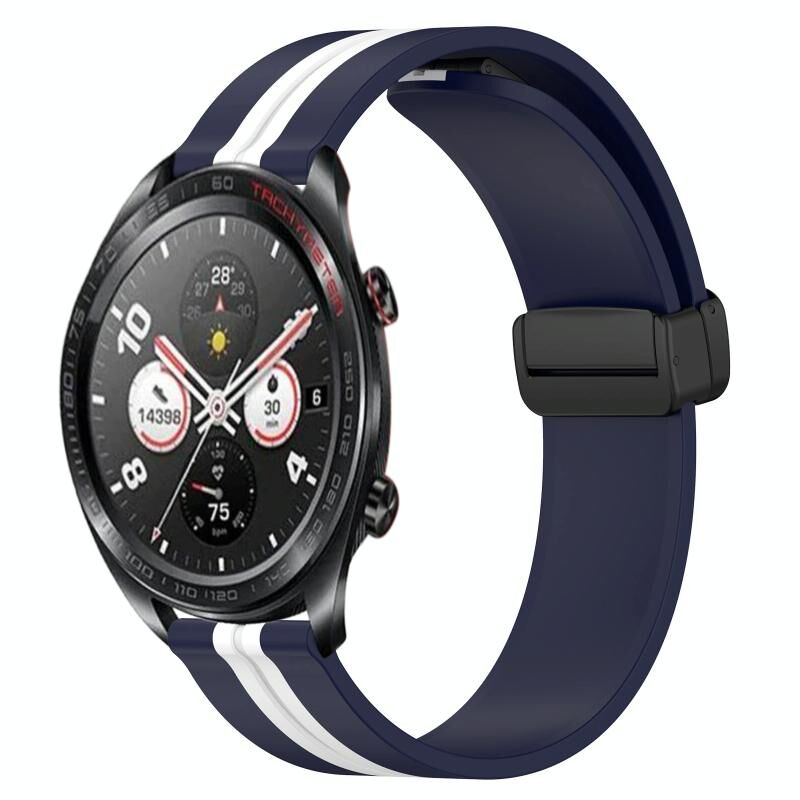 Για το Honor Watch Dream 22mm Πτυσσόμενο μαγνητικό κούμπωμα ζώνη ρολογιού σιλικόνης (Μπλε + Λευκό)