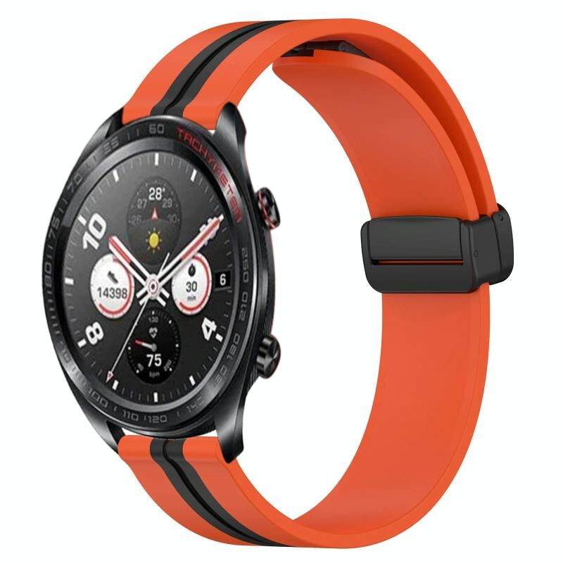 Για το Honor Watch Dream 22mm Πτυσσόμενο μαγνητικό κούμπωμα ζώνη ρολογιού σιλικόνης (πορτοκαλί + μαύρο)
