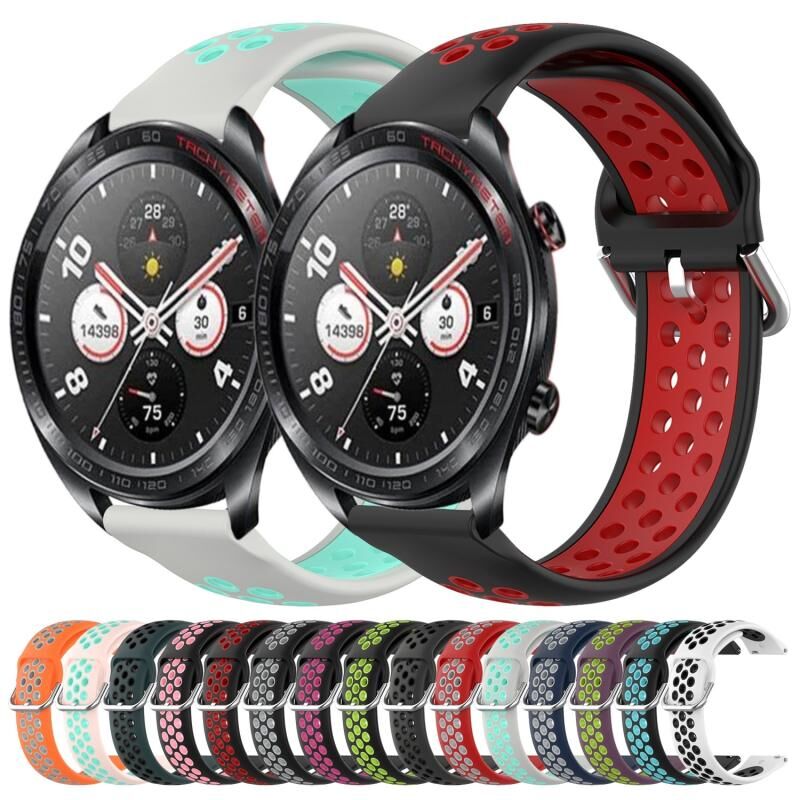 Για το Honor Watch Dream 22mm διάτρητη αναπνεύσιμη αθλητική ζώνη ρολογιού σιλικόνης (μαύρο + γκρι)