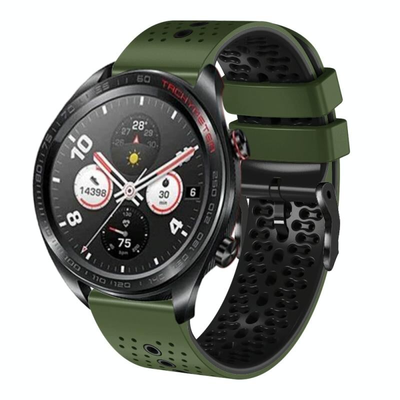 Για το Honor Watch Dream 22mm διάτρητη ζώνη ρολογιού σιλικόνης δύο χρωμάτων (πράσινο στρατού + μαύρο)