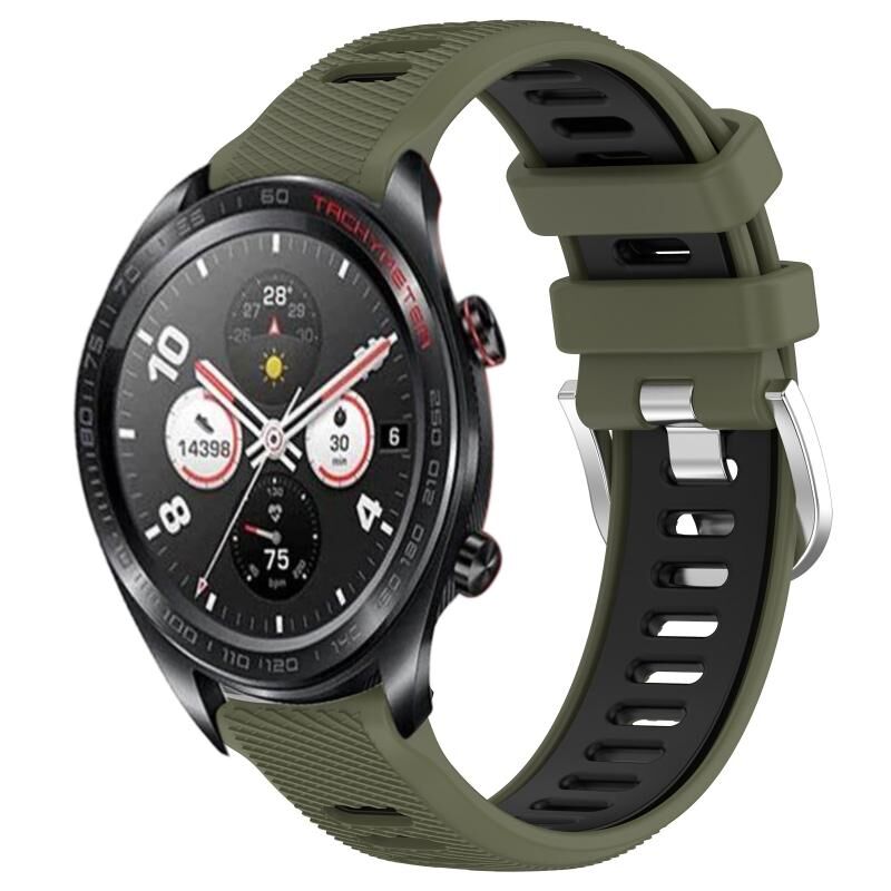 Για το Honor Watch Dream 22mm Αθλητισμός δύο χρωμάτων χάλυβα πόρπη σιλικόνης ρολόι μπάντα (Στρατού πράσινο + μαύρο)