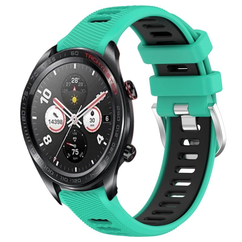 Για το Honor Watch Dream 22mm Αθλητισμός Δύο χρωμάτων χάλυβα πόρπη σιλικόνης ρολόι μπάντα (Λίμνη μπλε + μαύρο)